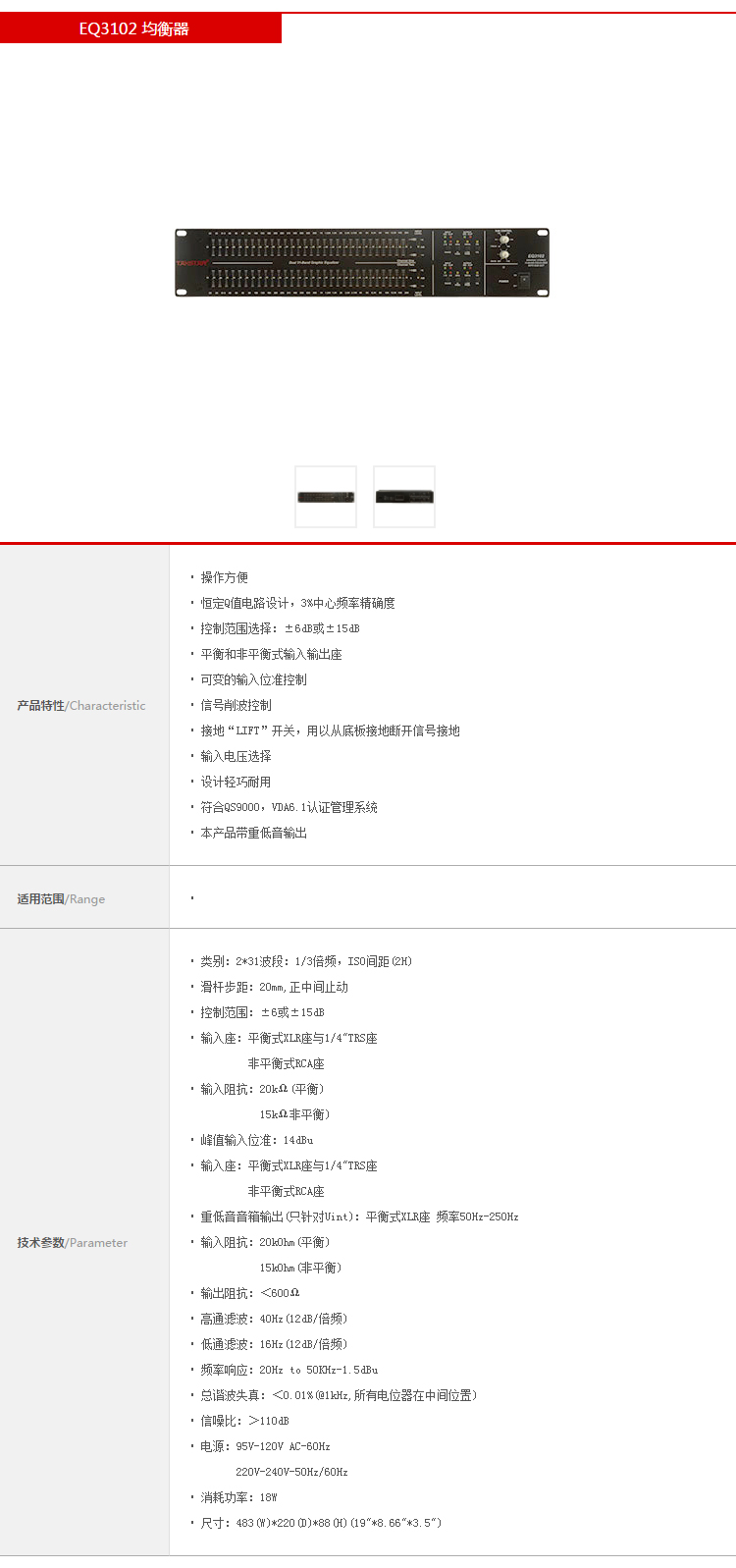 得勝/TAKSTAREQ3102噪音阻抗器均衡器 31波段立體聲帶重低音輸出 信號削波控制 輕巧耐用