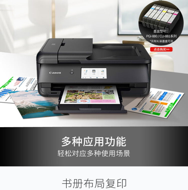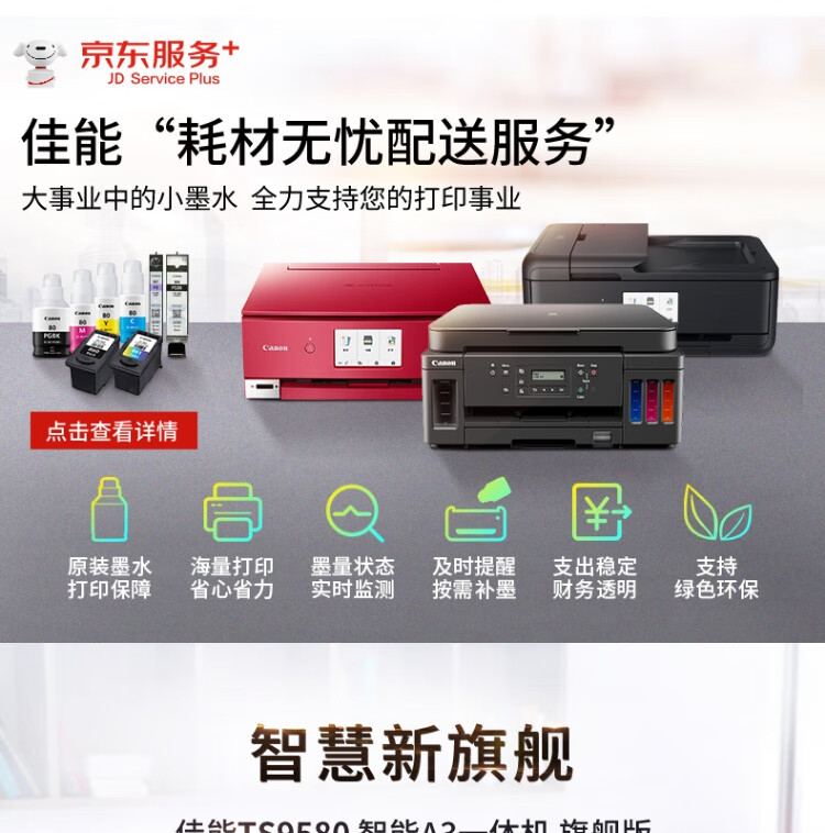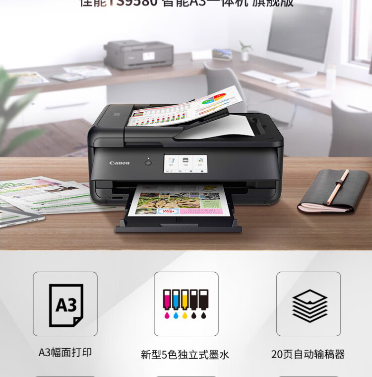 佳能/CANON TS9580 A3 彩色打印機 A3幅面無線彩色噴墨多功能一體機打印/復(fù)印/掃描 微信