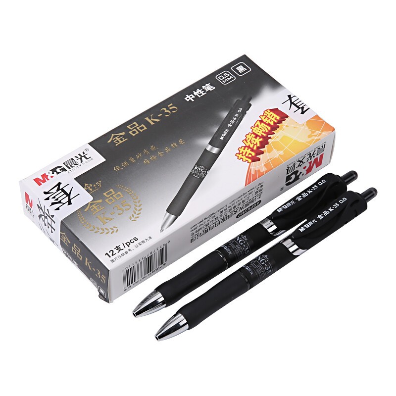晨光 M&G 文具0.5mm黑色中性筆 按動(dòng)子彈頭簽字筆 經(jīng)典學(xué)生筆 商務(wù)辦公水筆 金品K35-黑色0.5(12支)