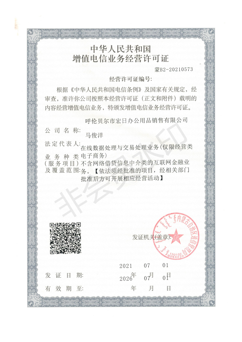 電信增值業(yè)務許可證